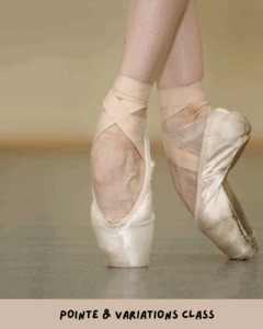 For Intermediate & Advanced pointe dancers: Our new monthly Variations Class meets once/ month on Tuesdays, 8:00–9:00 PM.